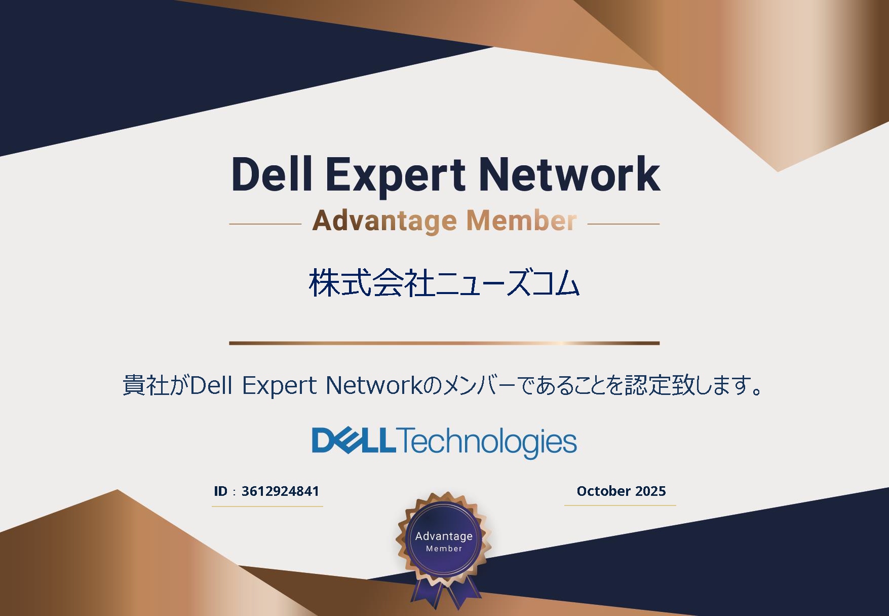 株式会社ニューズコムは、デル・テクノロジーズ株式会社が提供する、ITコンサルタントおよびMSP向けプログラム「Dell Expert Network(デル・エキスパート・ネットワーク)」の認定パートナーとして登録されました。