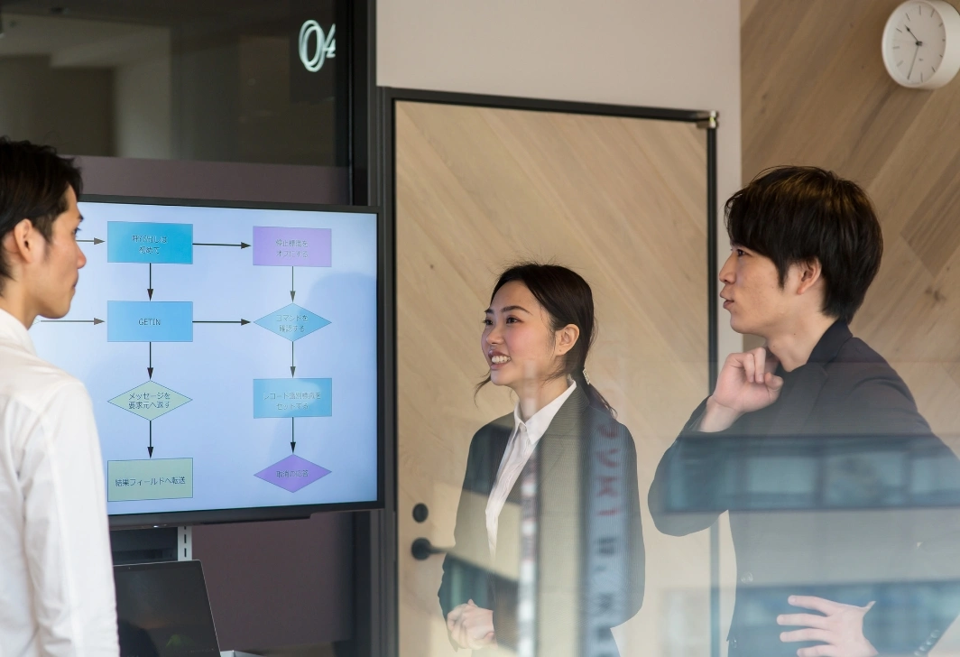 私たちは、お客様もプロジェクトチームの一員だと考えています。定期的なミーティングはもちろん、ご要望に応じてチャットツールなどを活用し、常に進捗を共有。いつでも気軽に相談できる環境を大切にしています。