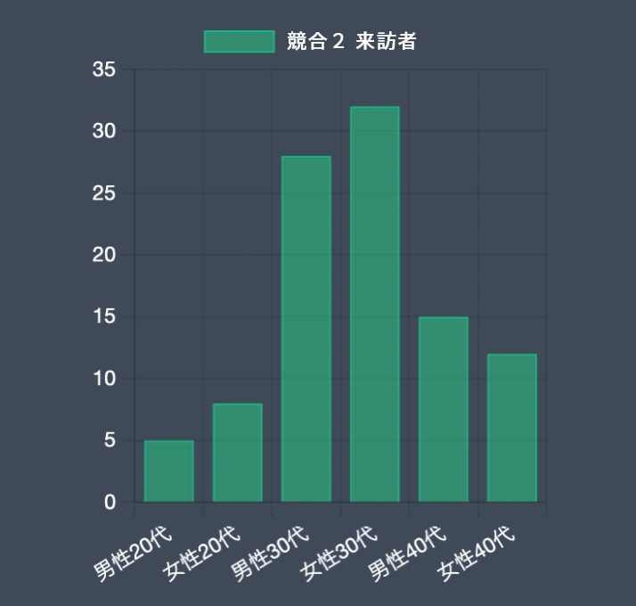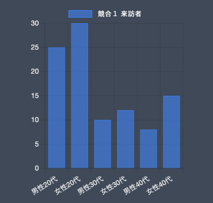 競合1は特にA区の20代女性に強く支持されています。この層を自社に振り向かせるため、A区にいる20代女性をターゲットに、特別なクーポン広告を配信するという戦略が考えられます。
