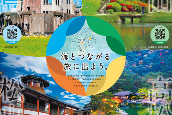 瀬戸内の4県都市(広島・岡山・愛媛・香川)の観光地をVR動画で紹介する事をPRしたポスターです。